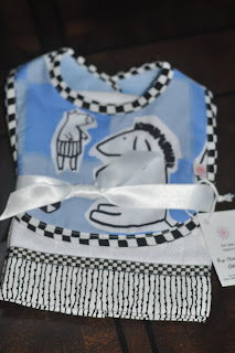 We received a cute bib and burp cloth set from Barb Sweder Barrington. This would be such a nice baby shower gift. The bib is lined with a lightweight polyester fleece that prohibits the moisture from going through onto the baby. I thought this was great! You wouldn’t believe how many times I have put a bib on my little guy and his shirt has still gotten wet. That never happened when we used this bib!
