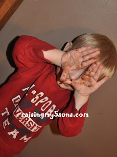 (One of my helpers, my 2 year old. When asked if he got into the brownies, he said NO!)