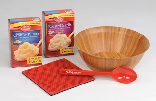 One of my lucky readers will receive prize pack that includes two boxes of Betty Crocker Boxed Instant Mashed Potatoes (one Roasted Garlic and one Homestyle Creamy Butter), a serving bowl, a trivet and a serving spoon!