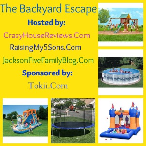The first day of Summer is right around the corner so what better time to have a HUGE giveaway for our readers to give them a chance to relax in the sun while their kiddos have a blast in the backyard?! Crazy House Reviews, Raising My 5 Sons and the Jackson Five Family Blog will be hosting The Backyard Escape giveaway and we want all of our blogger friends to be a part! The winner of the giveaway will receive their choice of a swimming pool, trampoline, bounce house, swing set or water slide! The giveaway will go live next Wednesday, June 13th!