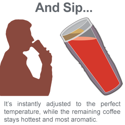 - 3-position drink mode selector – “Lock, Sip, Tip & Cool” – allowing you perfect taste and temperature control whether you need a bolt of caffeine or prefer to linger over your coffee ritual