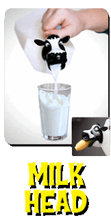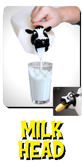 A new milk cap that transforms your standard, everyday, boring, run of the mill hum drum jug of milk into instant fun! Milky Moo is here to entertain and never has to come off the jug of milk. After you pour the milk, just pop the Corn Cob Topper back in Milky Moo’s mouth and refrigerate!