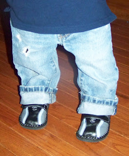 When the shoes arrived I will admit that I was pleasantly surprised. They are made of the softest leather possible! They must be very comfortable because my little guy does NOT want to take these shoes off! It is so funny because the minute he wakes in the morning he has to find his new shoes, bring them to me and I have to put them on him. If I don’t put them on him immediately he cries! I’m not joking! At night if I’m ready to go to bed and he is not yet asleep I am not allowed to take his shoes off. The other night I tried to take his shoes off when he was dosing on the couch a little and he started crying! I had to put him to bed in his new shoes!