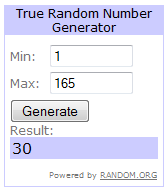 Winner has been notified by email and has 48 hours to contact me to claim prize.